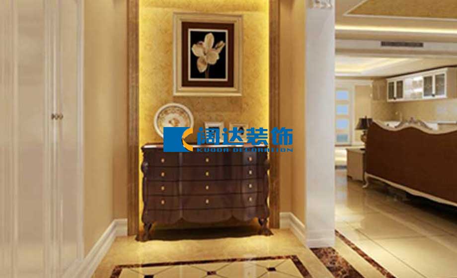 通過與業(yè)主溝通,了解家庭成員夫妻和兒子居住和使用需求,結(jié)合房屋本身的結(jié)構(gòu)特點,入戶門正對客廳,客廳私密性不好,門廳要大滿足主人實用功能,還要體現(xiàn)玄關(guān)功能.客廳與餐廳空間沒有有效劃分,另外廚房中西廚的處理要考慮實用性和裝飾性。"門廳做了整體衣帽柜,滿足實用功能,拆除部分隔墻,增大了客廳及門廳間的通道,使整個空間更加開闊。造型啞口的設計,