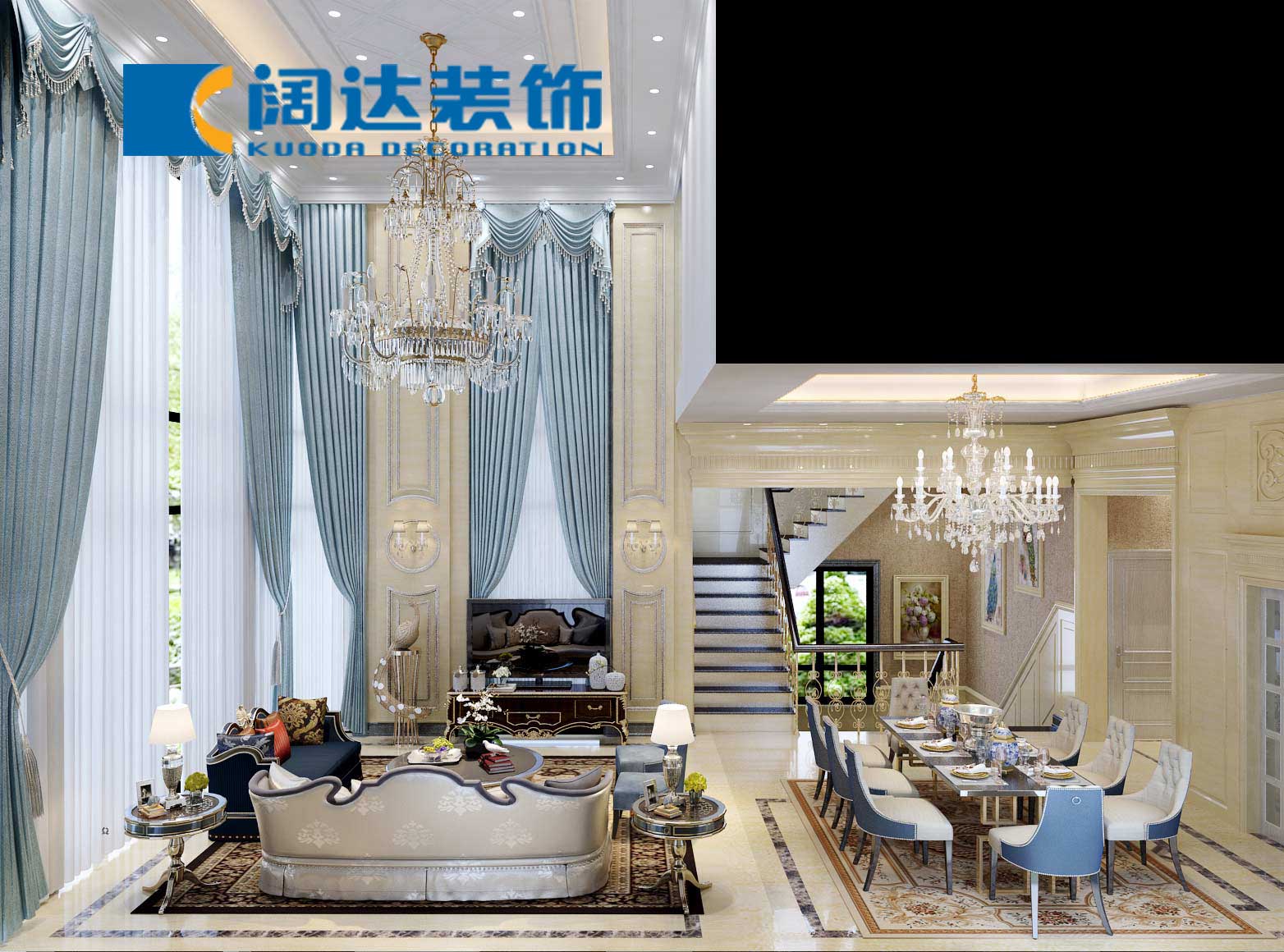 本案例采用歐式設計風格,通過整體色彩及家具的搭配營造自然、舒適、高雅的生活氛圍,此設計案例也在相當程度上表現出其居住者的品位、愛好和生活價值觀。