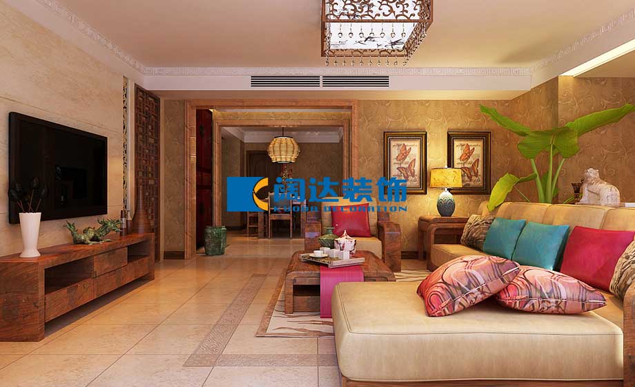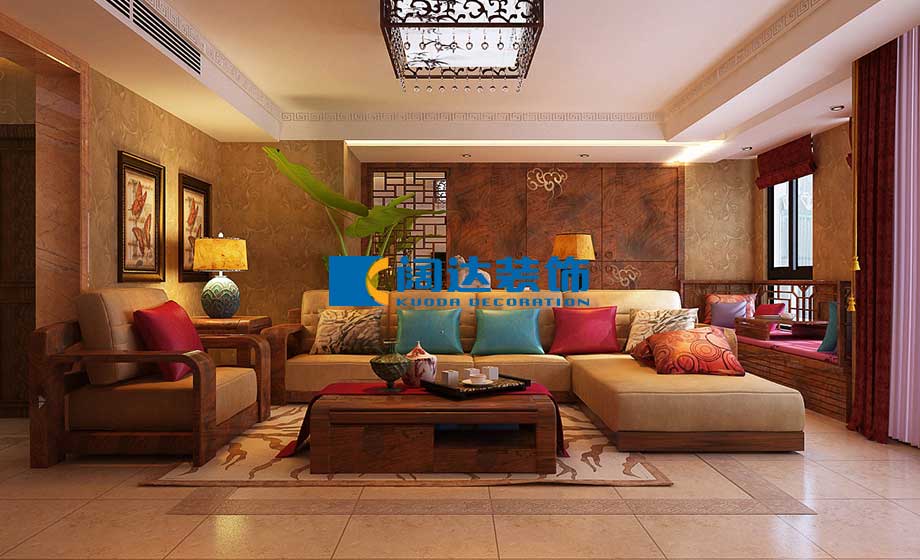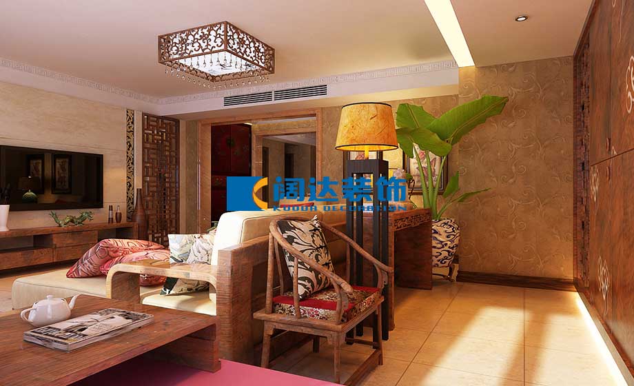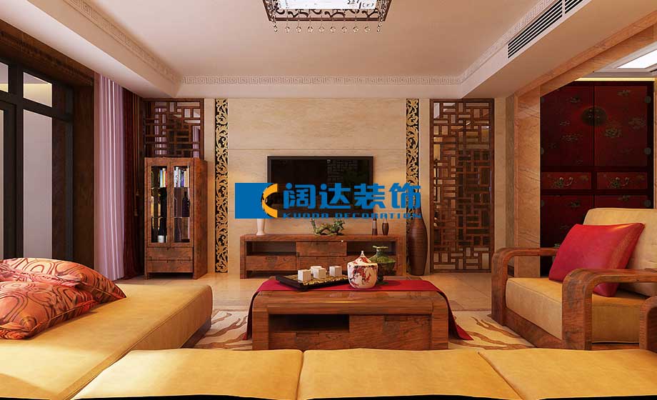 客廳:客廳電視墻的設計簡潔而大氣,天然大理石和實木雕刻兩種材質相結合,設計元素回字紋、云卷紋的運用,彰顯了整體的高貴雅致,內斂的奢華質感表露無遺。整體的回字紋造型石膏線條,在細節處彰顯精致細膩之感,體現了客戶本身細膩的生活態度。