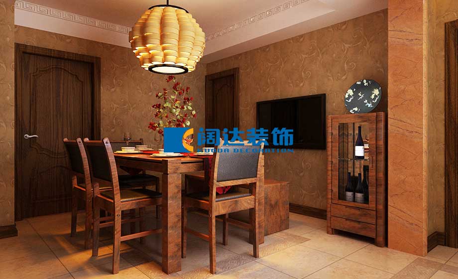 餐廳:大面積卷葉草文理壁紙搭配回字紋造型石膏線條,再有寬板平板石膏線條造型,簡潔中凸顯層次感。