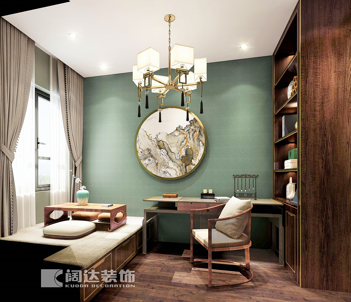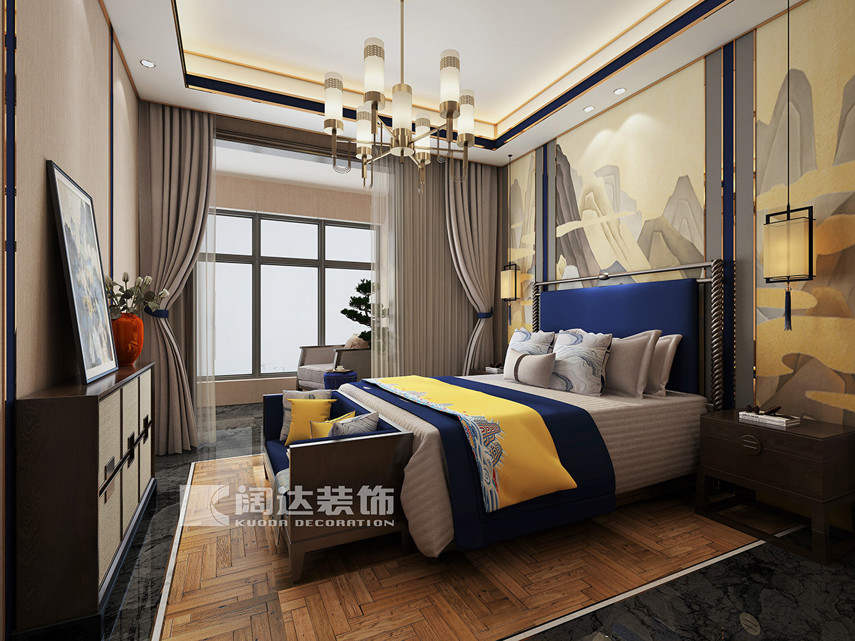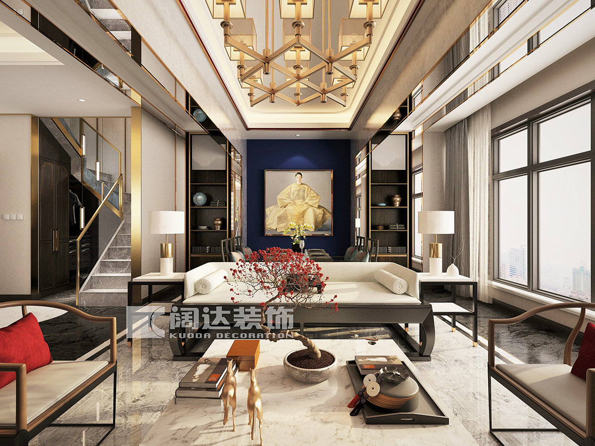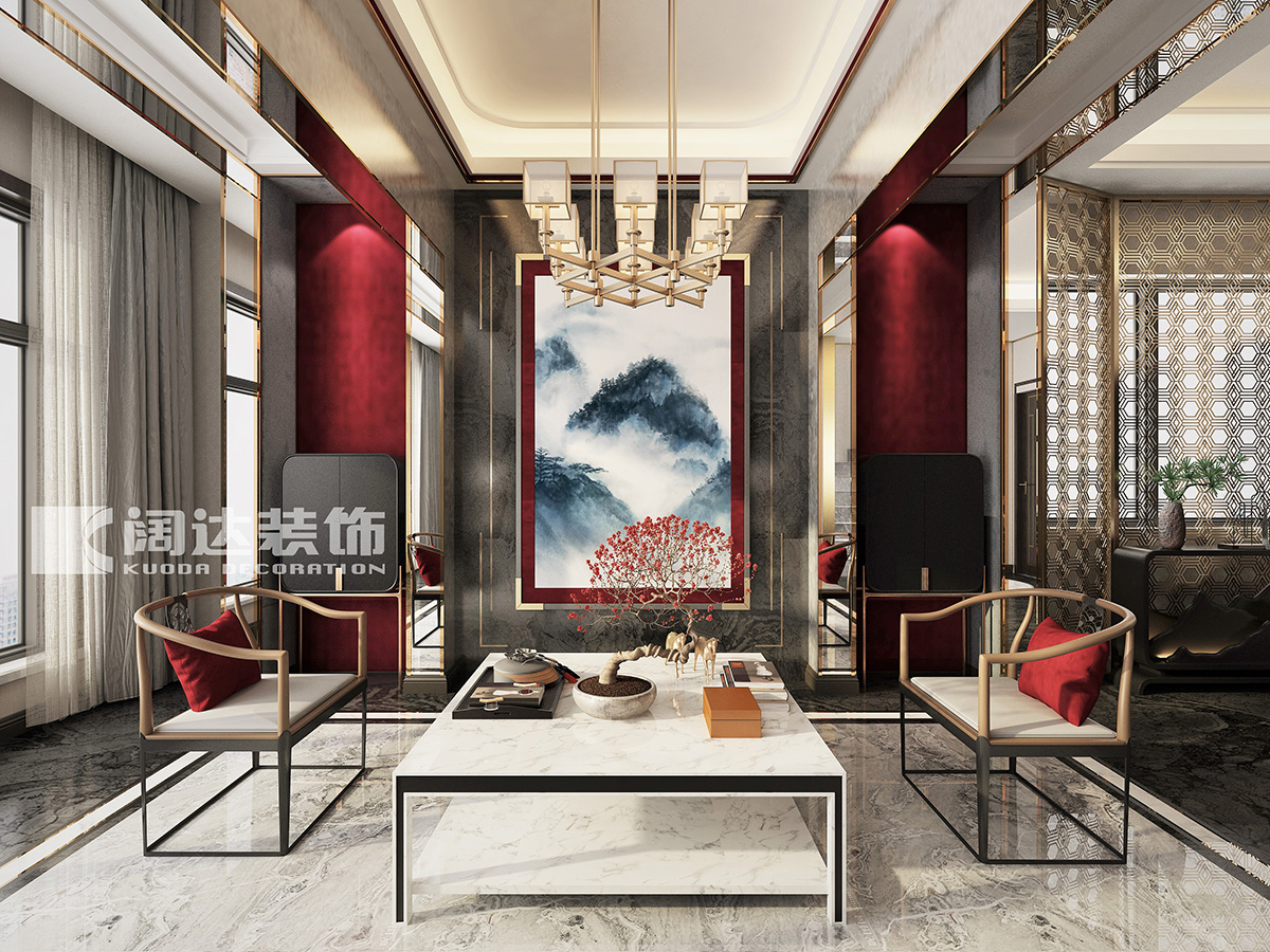 此案例沒有繁瑣的裝飾,局部色彩的點綴和金屬扣線的裝飾使中式風格更具有現代靈動的感覺。整體空間闡釋這生活的哲思,回歸內心的平靜,去尋找屬于自己的靈魂,讓設計蛻變為有溫度的生活藝術。