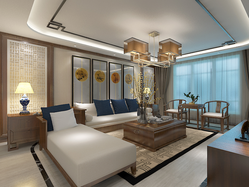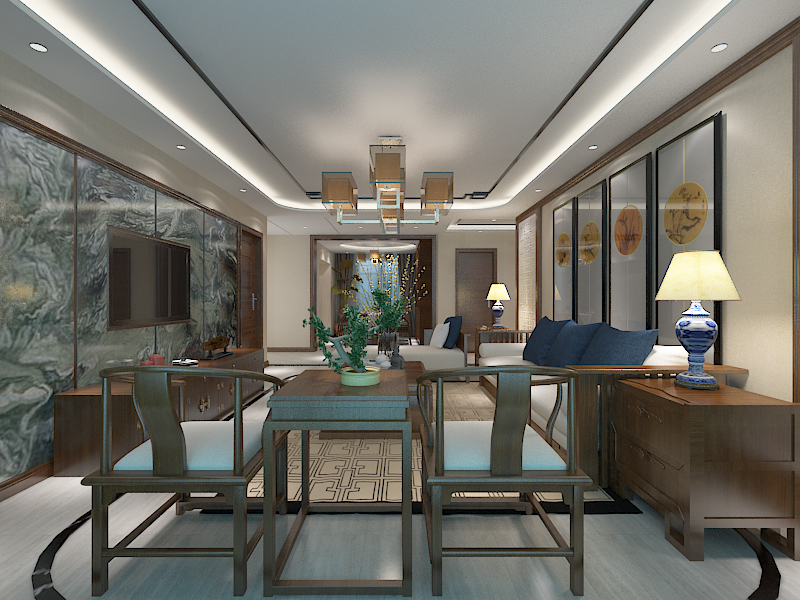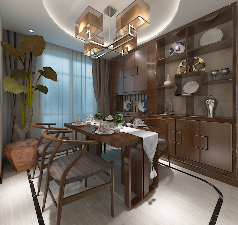 本案中的145平米的四居室整體采用了中式風格裝修,過對傳統文化的解讀,將現代元素與傳統元素結合,以現代人的審美需求來打造富有傳統韻味的細節。風塵俱靜,禪味悠長。