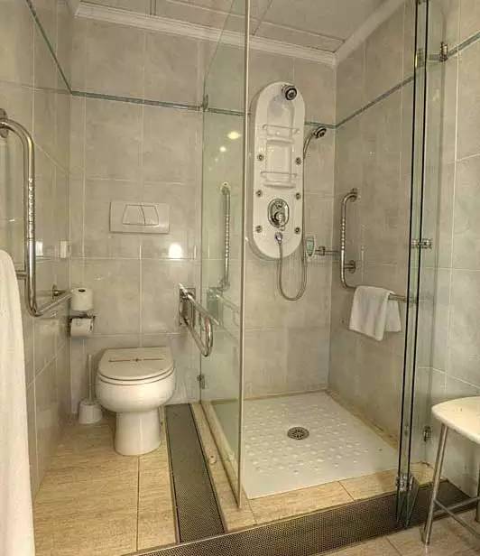 選用防水材質的扶手裝置在浴缸邊、馬桶與洗面盆兩側,可令行動不便的老人生活更自如。