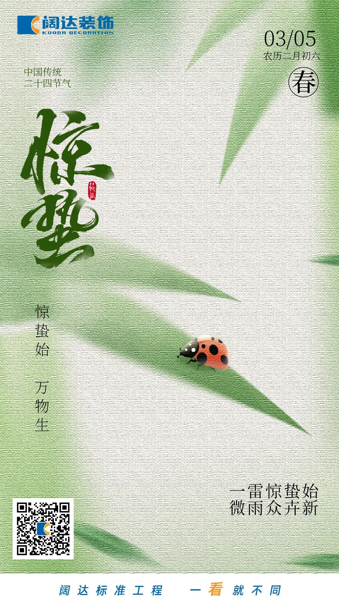 驚蟄,是二十四節氣中的第三個節氣,反映著自然界生物受節律變化影響而萌發、生長的狀態。驚蟄是花開的季節,也是適合裝修的季節。